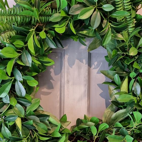 The All Season 60cm artificial wreath, featuring mixed foliage. This durable easy to clean versatile wreath is perfect for all year round.