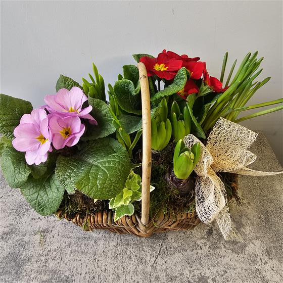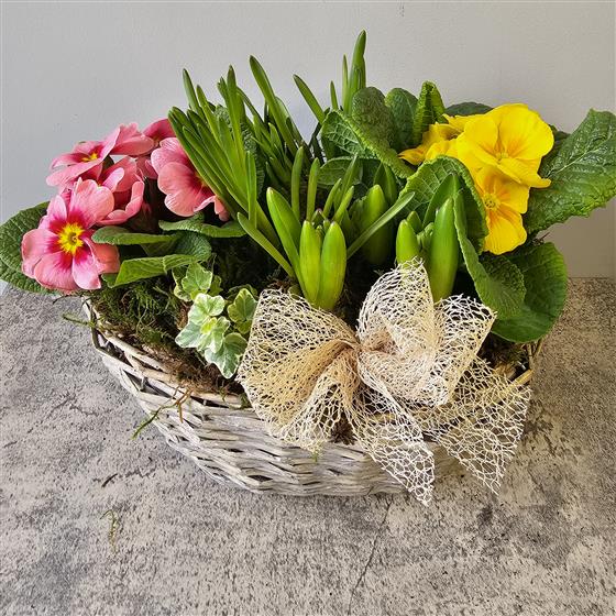 Brighten someone's day with a lovely mixed basket of spring bulbs and plants, container may vary due to availability.