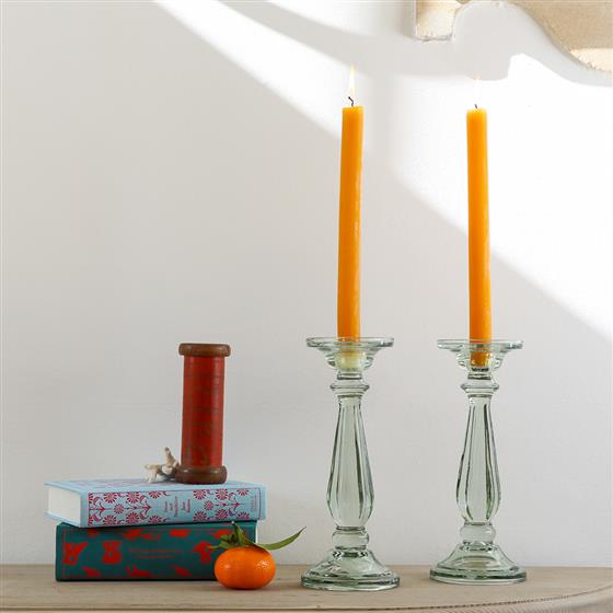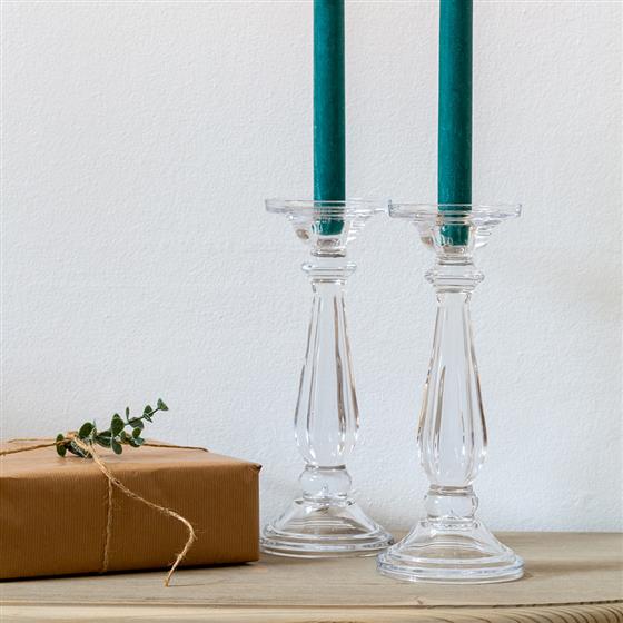 Our glass Tilbury Candlestick is available in 2 different colours, a natural green shade and a traditional clear version. Sophisticated and subtle, these dainty candle stick holders will make a pretty addition to your home when teamed with one of our beautiful rustic dinner candles. Adorn a mantle piece or use to embellish a dinner party table setting, wherever you choose to place them, we can assure they will compliment any interior.