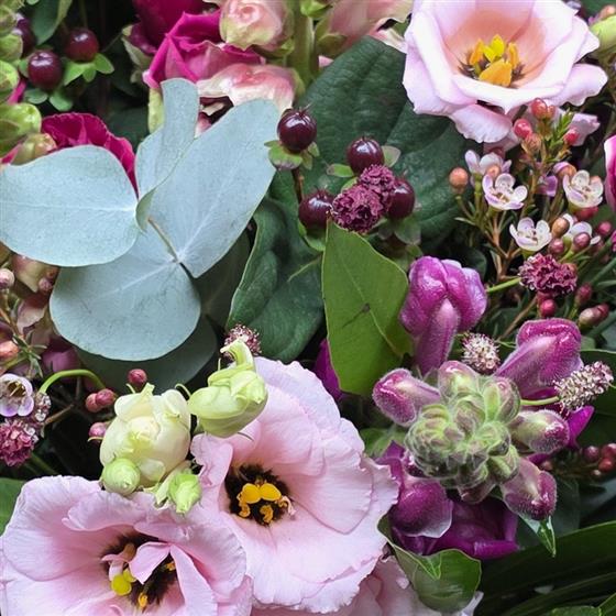 A beautiful bouquet made up of lilacs and purples with a hint of pink and burgundy!