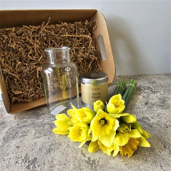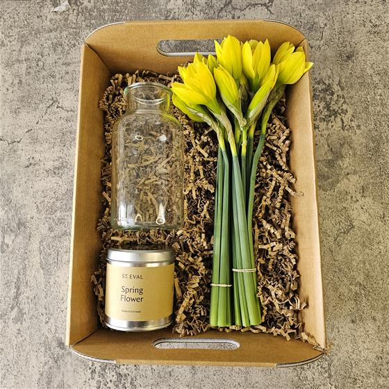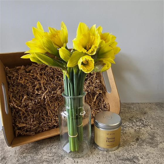 This set is perfect for lovers of flowers & candles - enjoy arranging daffodils in a glass vase and light a beautifully scented St Eval Candle.