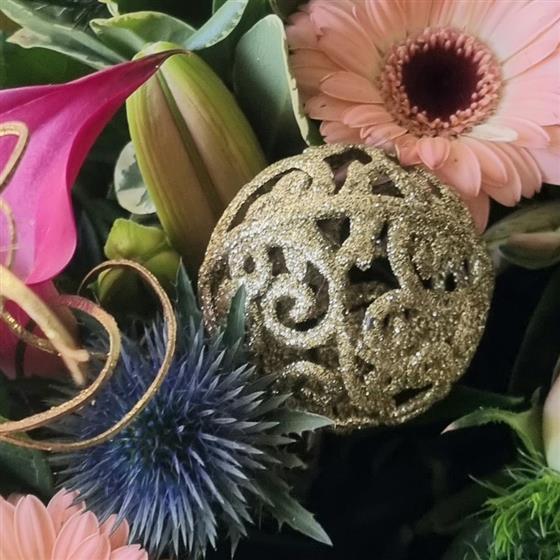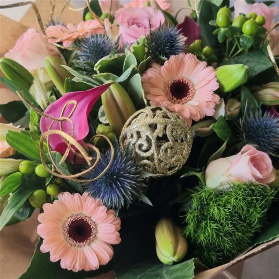 Unsure what to send? Let us create a festive bouquet for you inspired by Festive Pinks. Our hand-tied bouquets are delivered aqua packed in water.
